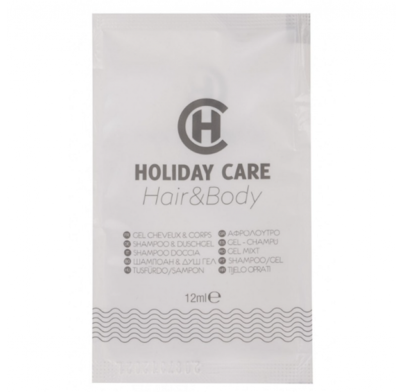 Holiday Care este o gama de cosmetice hoteliere ce se bucura de cel mai bun raport pret-calitate. Sticlutele au un design minimalist, sunt transparente si au o eticheta eleganta. De asemenea, capacul este transparent, fiind usor de desurubat. Aceasta gama pune accentul pe liniile simple, curate si proaspete si, datorita acestor aspecte, este cea mai usor de customizat cu diferite etichete.