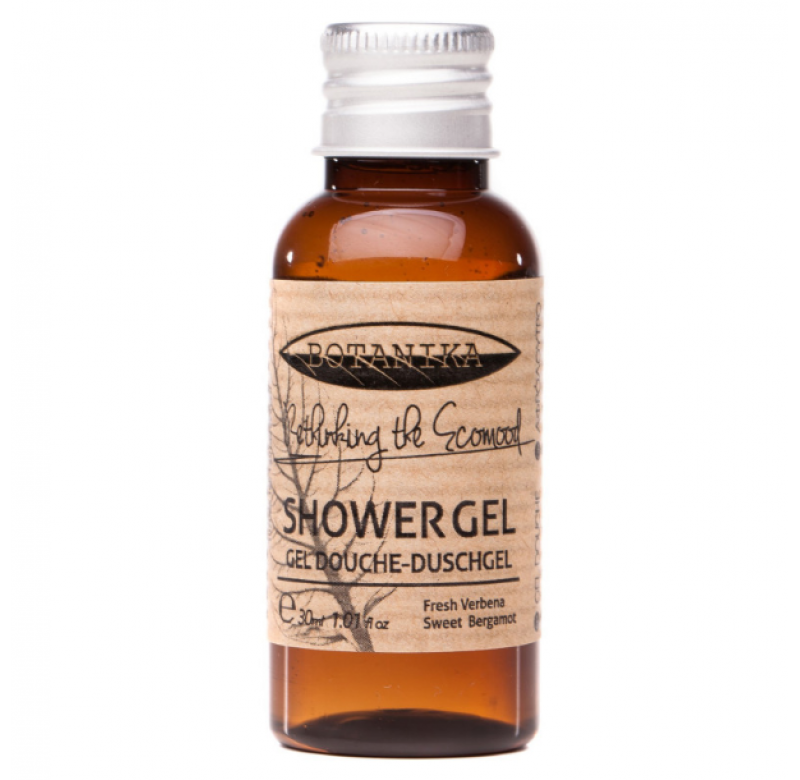 Gelul de dus hotelier Botanika are capacitatea de 30 ml iar design-ul vintage al sticlei PET o face usor de incadrat in baile clasice, elegante dar si in cele moderne.